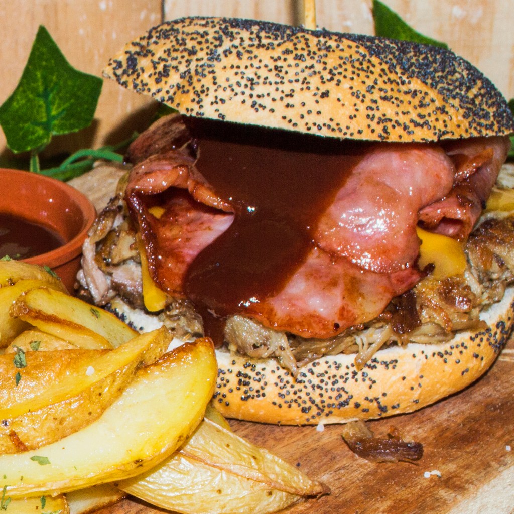 180g de carne de costilla marinada en Jack Daniel´s y asada a baja temperatura. Ingredientes: glaseado de barbacoa Jack Daniel´s, beicon crujiente y queso cheddar. Todo en pan brioche. Acompañado de patatas fritas y salsa barbacoa Jack Daniel´s.